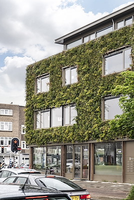 Zij-aanzicht groene gevel Croeselaan-Utrecht
