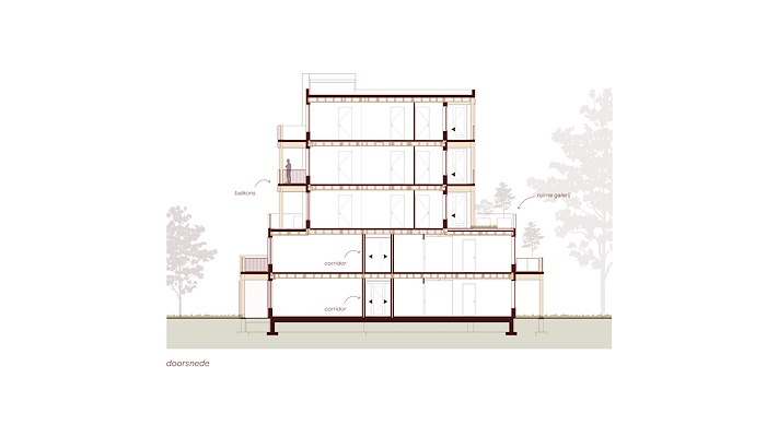 De gevels zijn onder andere uitgevoerd in voorvergrijsd fraké met geïntegreerde groenvakken. Naast de visuele kwaliteit draagt dit ook bij aan de beleving van het gebouw vanaf de openbare ruimte.