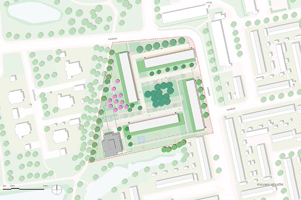 De wijk Lankforst kent een duidelijke stempelstructuur. De richting van deze structuur is te herleiden naar een oude landschappelijke lijn met zijn oorsprong in het Grand Canal. Het nieuwe gebouw gaat hierin mee, zodat samenhang met de omliggende bebouwing ontstaat. Door het gebouw aan de zuidzijde van het plangebied te positioneren, grenzend aan de oorspronkelijke rooilijn van gesloopte gebouw, wordt de gewenste verbinding tussen de ‘Brink’ en de cultuurhistorische laan gerealiseerd. Het gebouw is dichter op de waterkant komen te staan en omsluit op deze manier de groenzone aan de oostzijde.