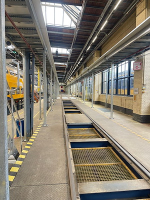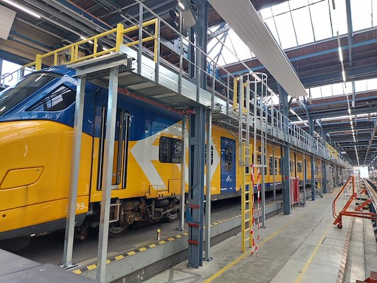 In opdracht van NS Amsterdam Zaanstraat heeft Nolte Mezzanine een onderhoudsbordes ontworpen, geleverd en gemonteerd. Dit bordes is geplaatst in de onderhoudswerkplaats waar dagelijks gewerkt wordt aan het inspecteren en onderhouden van treinen. Het doel van deze maatwerkoplossing: medewerkers op een veilige én praktische manier toegang geven tot hoger gelegen delen van het rollend materieel.
