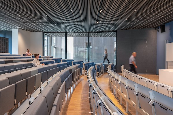 Collegezalen, practicumruimten, de bibliotheek en zelfstudieruimten geven in het interieur uitdrukking aan het veelzijdige karakter van de faculteit. In de zelfstudieruimten en bibliotheek is er rust en zorgt de uitkijk op de groene hoven voor een prettig verblijf. In de kantoorvleugels dragen de warme kleuren en materialen van samenwerkplekken en huiskamers bij aan een uitnodigende sfeer.
