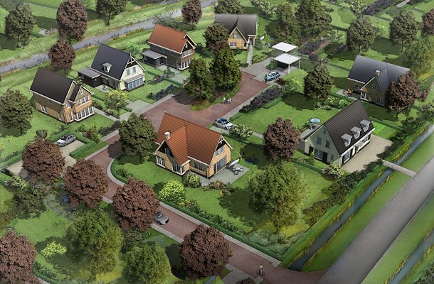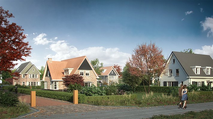 Met het verdwijnen van het bestaande kassencomplex, is ruimte gecreëerd voor zowel zeven woningen, maar ontstond ook de mogelijkheid om het zicht op de omliggende polders te herstellen. Om de stedenbouwkundige puzzel te kunnen maken, passend in de landelijke context van het dubbele polderlint, zijn de vrijstaande villa’s rondom een collectief woonerf geplaatst. De woningen zijn geïnspireerd op de gezichtsbepalende woningtypes in de omgeving, zoals de tuinderswoningen en hebben een heldere hoofdvorm. Met verspringende rooilijnen en overwegend lage goten heeft elke woning een individueel karakter. De verschillende kleurstellingen en de toepassing van planken versterkt de eigen identiteit binnen het harmonieuze beeld. Met een integraal ontwerp door de landschapsarchitect voor de beplanting, de halfverharding en het gebruik van nestkasten is ruim aandacht gegeven aan biodiversiteit.