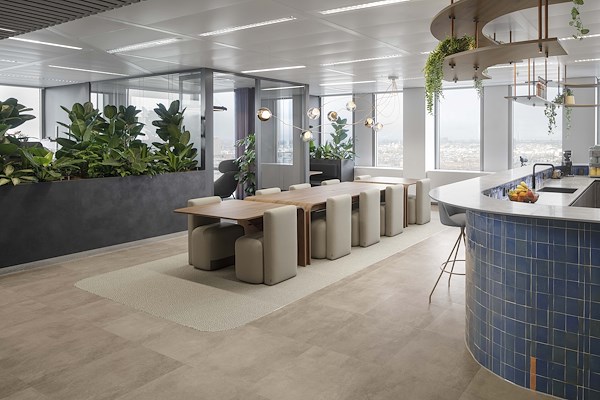 Rondom deze centrale handelsvloer hebben we diverse werkplekken en sociale ruimtes ontworpen. Een grote bar biedt ruimte voor gezamenlijke vieringen en informele ontmoetingen, terwijl kleine vergaderruimtes privacy bieden voor digitale meetings. Deze ruimtes zijn strategisch gepositioneerd om te profiteren van het spectaculaire uitzicht over Amsterdam, wat bijdraagt aan een inspirerende werkomgeving.