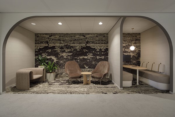 Ons ontwerpteam creëerde een concept geïnspireerd door de oude Griekse Agora—opnieuw geïnterpreteerd voor de moderne werkplek.