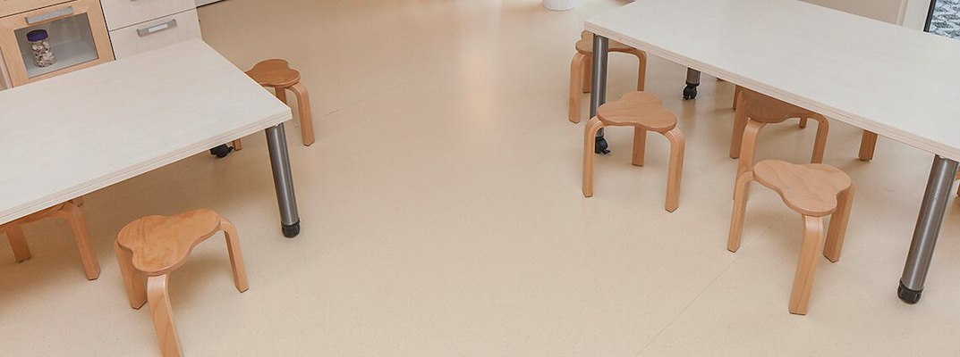 De caoutchoucvloer van objectflor is vooral ook geschikt voor kleuterscholen