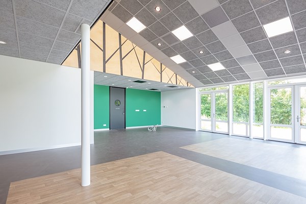 De architectuur bevat subtiele verwijzingen naar groei en verbinding: speelse overgangen tussen functies, wisselende plafondhoogten en een zichtbare relatie tussen constructie, omgeving en gebruik.