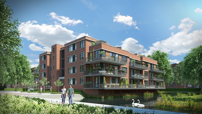 De woningen zijn gesitueerd rondom een unieke u-vormige open patio, die door de maat en uitwerking; het groen in de plantenbakken en de composiet-houten bekleding van de loopbruggen, een intieme ruimte is geworden. Tegelijkertijd zorgt de combinatie van donker staal van de loopbruggen en het stoere genuanceerde metselwerk voor een industrieel, expressief karakter.