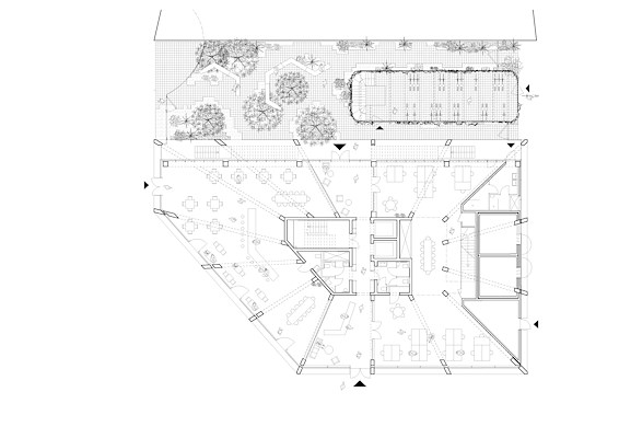 De prominente hoeklocatie aan de centrale as Boulevard Joliot-Curie was voor ons de drijfveer om een zo transparant mogelijke begane grond te maken, een open omgeving waar de werkplek en de publieke ruimte samenkomen. Als gevolg hiervan lijkt Facette te balanceren op een ranke voet, die niet alleen zoveel mogelijk ruimte overlaat voor collectieve activiteiten rondom, maar zelfs de openbare ruimte naar binnen lijkt te trekken. Imposante betonnen bogen creëren een sterke visuele aantrekkingskracht, die de creatieve ambities van de ruimte uitstraalt. Deze ruimte wordt het sociale hart, een veelzijdige ruimte voor werk, ontspanning en ontmoeting — of zoals we het vaker noemen, de 'WeSpace'.