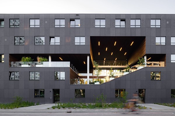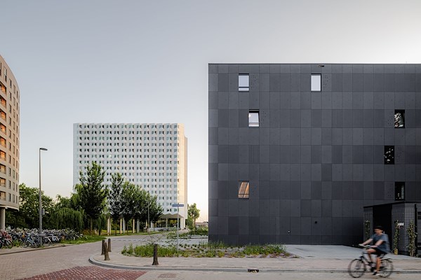 Langs de Balthasar van der Polweg breekt het gebouw met het strakke stedelijke grid van Carel Weeber en presenteert het zich als een verrassend nieuw object in de omgeving — een gebouw dat zowel bewoners als de bredere campusgemeenschap aantrekt. Door slim gebruik van prefab, zorgvuldig ontworpen sociale ruimtes en duurzame, ecologische ingrepen, laat Suite 9 zien hoe studentenhuisvesting zowel efficiënt als beeldbepalend kan zijn.