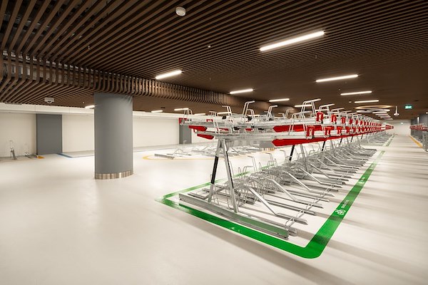 -plafond bij aan een moderne en hoogwaardige uitstraling van de ruimte. Dit maakt de fietsenstalling niet alleen een efficiënte en veilige plek om fietsen te stallen, maar ook een prettige omgeving waarin gebruikers zich welkom voelen.