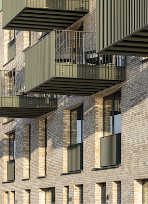 : The materials used seamlessly align with the Middelsee visual quality plan, and specifically with that of Havenstad – the northern part of Middelsee where the harbor occupies a central position. Huis aan de Haven was designed as a 21st-century interpretation of the warehouse. The combination of the brick structure with elegant materials such as powder-coated steel and anodized aluminum creates an urban harbor feel, inspired by a historic port city but executed in a modern form. Large openings, deep recesses, and rhythmic facades make the building legible and connected to its surroundings. It forms a natural starting point for the new urban district and a reference to the location's history.