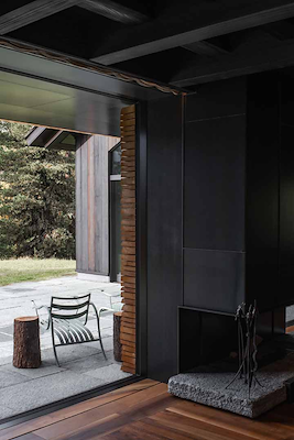 An unexpected and futuristic element of Chalet B is the disappearing entrance to the basement garage. Reminiscent of a James Bond movie, a section of the road approaching the chalet lifts to allow cars to enter and then closes invisibly behind them. The feature was custom designed and engineered in partnership with a German car elevator company. It maintains Powerhouse Company's track record in creating dramatic, beautifully designed garage spaces, for example in Villa B – which was built for the same clients as Chalet B.