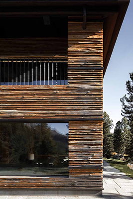 - Sander Apperlo, Partner Powerhouse Company From rustic to refined Chalet B is set in the Suvretta mountains of the Swiss Alps. Strict regulations meant that the architects had to work solely within the footprint of the existing ski chalet and could not extend the building. While all the new spaces had to be dug out from underneath the old walls, above ground the existing volumes were given a fresh identity by moving and enlarging some of the windows, maximizing the spectacular mountain views, and by adding a new wood facade to replace the original plaster. The chalet echoes traditional Alpine buildings with its tripartite structure of stone plinth, wooden walls and slate roof. The facade design, however, is a new departure. Executed in local timber, it forms a composition of alternating horizontal and vertical lines that reflect the contours of the landscape. Horizontally cut wooden tree trunks and vertical sandblasted planks are combined with horizontal bronze profiles to form a design that is elevated by its quality of execution: The wooden planks, for example, were carefully selected to avoid knots, which would have detracted from the clean lines of the composition. Varying window sizes and treatments – some placed in invisible frames, others in recessed bronze boxes – add to the depth of the design. A rustic chalet becomes a refined piece of architecture. It was not possible to expand the volume of the building, so we transformed it by playing with the facade, windows and detailing. - Nanne de Ru, Partner Powerhouse Company A spectacular entrance