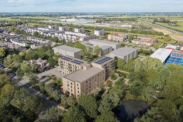 In de stedenbouwkundige inpassing is gezocht naar balans tussen gebouw en landschap. De bouwmassa’s volgen de contouren van het bestemmingsplan en laten ruimte voor groene randen en doorzichten. De entrees openen zich naar de omgeving, waardoor het complex zich openstelt naar het park en de wijk. Parkeren en fietsenstallingen zijn zorgvuldig geïntegreerd en uit het zicht geplaatst, zodat de groene continuïteit behouden blijft.