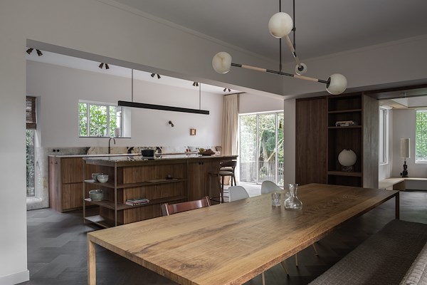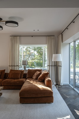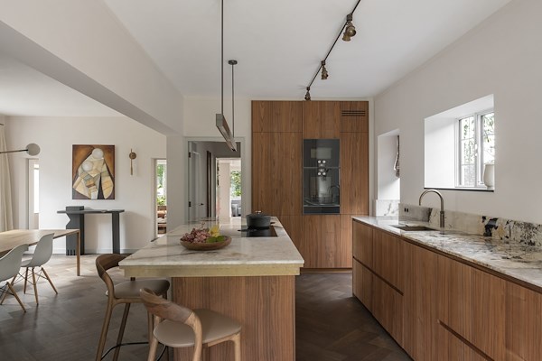 Gaandeweg groeide de wens om de natuur niet slechts als decor, maar als integraal onderdeel van het dagelijks leven te omarmen. De buitenruimte werd zorgvuldig ingekaderd, waardoor binnen en buiten naadloos in elkaar overlopen. Zo is de monumentale villa getransformeerd tot een harmonieuze leefomgeving, waarin iedere bewoner zich verbonden voelt met de rust en schoonheid van de natuur. Dankzij het gebruik van luxueuze materialen heeft de woning haar oorspronkelijke glorie herwonnen – of misschien zelfs overtroffen.