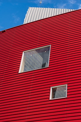 . Deze panelen, met een dikte van 8 mm in plaats van de eerdere 10 mm, bieden juist méér stevigheid dankzij hun hogere densiteit. Het materiaal is dichter, vlakker en strakker, wat zorgt voor een uniforme uitstraling. Bovendien zijn de panelen door en door gekleurd in de gewenste roodtint, met een coating die een garantie van twintig jaar biedt. Esthetiek en duurzaamheid komen hierdoor weer samen.