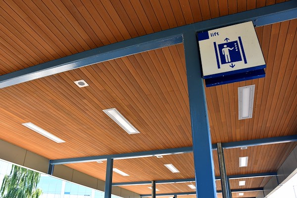 Het recent gerenoveerde station Amersfoort Schothorst onderging een aanzienlijke transformatie waarbij meer dan 8000 meter Obèche Noir® is toegepast voor de plafonds van de perrons. Deze keuze voor thermisch gemodificeerd hout draagt bij aan een uitnodigende, natuurlijke sfeer die aansluit op de belevingswaarde van de reiziger. De toepassing van gevingerlast Obèche Noir® bood hierbij zowel esthetische als technische voordelen.