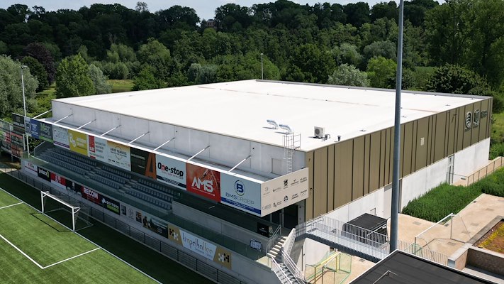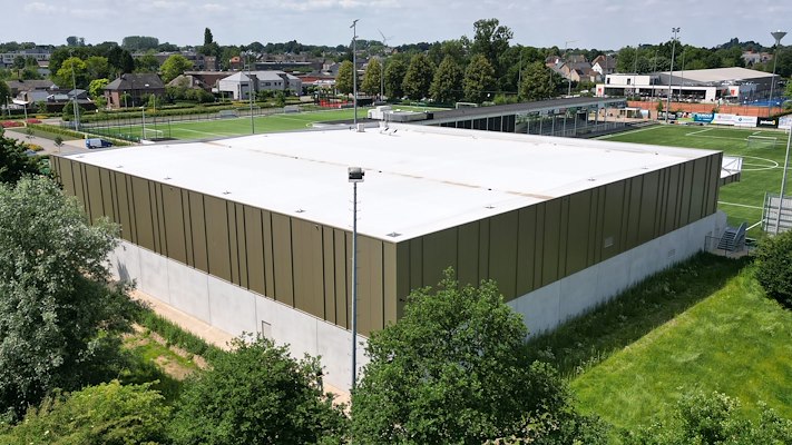 Aan de rand van een bosrijk gebied in Bilzen-Hoeselt verrees de Multisporthal Zeepstraat – een eigentijds sportgebouw waarin functionaliteit, duurzaamheid en architectonische verfijning samenkomen.
