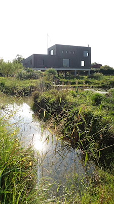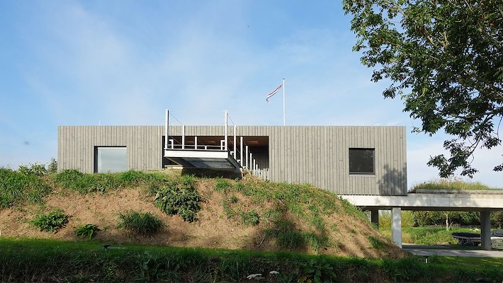 De regio maakt deel uit van een historisch verdedigingssysteem, gekenmerkt door betonnen bunkers en geconstrueerde waterlopen. Dit infrastructurele landschap, samen met de dreiging van toekomstige overstromingen, vormde de conceptuele basis van het project. Het gehele gebouw is verheven op een betonnen plint, een stevige ‘tafel’ die zorgt voor duurzame veerkracht en tegelijkertijd het natuurlijke landschap eronder actief houdt. Het gebouw staat als een autonome figuur in het open rivierland, terwijl het tegelijkertijd inspeelt op zijn kwetsbaarheden.