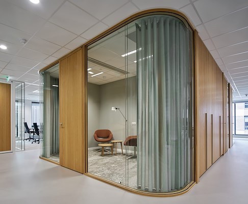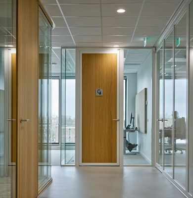 Door de zorgvuldig geselecteerde systeemwanden en deurprofielen ontstaat een optimale geluidsreductie die merkbaar bijdraagt aan rust en concentratie.