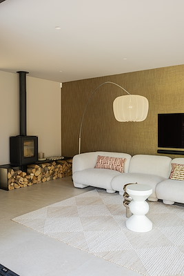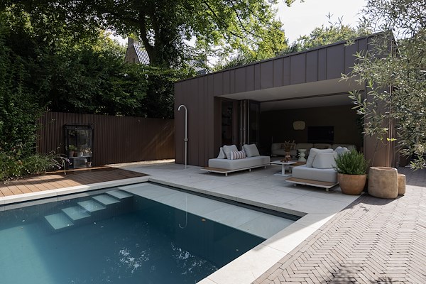 Deze woning laat zien hoe keramische materialen een centrale rol kunnen spelen in zowel interieur als exterieur. Het maatwerk buitenzwembad sluit naadloos aan bij de architectuur van de woning en vormt een elegant verlengstuk van het interieur. Binnen geven keramische werkbladen, vloeren en wandafwerkingen de ruimtes een strakke, tijdloze uitstraling, waarbij duurzaamheid en functionaliteit hand in hand gaan.