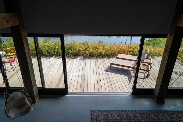 Gelegen aan de rand van het dorp Heeg, direct aan eigen vaarwater en in open verbinding met het Heegermeer in het hart van het watersportcentrum van Friesland heeft DAVL Studio deze schuurwoning ontworpen. De architectuur van het woon-werk-gebouw is in het landschap ingebed. Het volume is ontworpen als een split-level met het hoogteverschil in de langsrichting. Op de hoek is gebruik gemaakt van veel glas en grote puien, waardoor binnen en buiten in verbinding met elkaar staan.