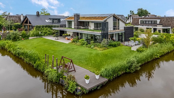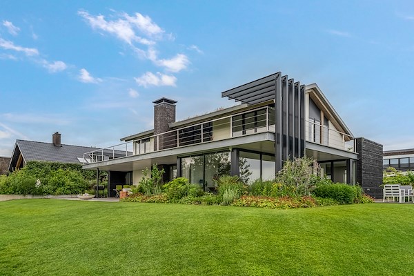 Wonen in luxe en stijl op een prachtige locatie met het hele jaar door uitzicht op het natuur was het uitgangspunt van het ontwerp. Het binnen/buiten leven wordt vesterkt door de verschillende terrassen met 2 buitenhaarden zodat ook in de koelere maanden het heerlijke plekken blijven. Het absolute pronkstuk is het dakterras. Met deuren vanuit meerdere kamers en een ligging op het zuidoosten geniet je hier de hele dag van de zon én het panoramisch uitzicht.