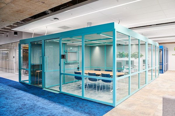 Geconfronteerd met de uitdaging van een grote, open vloer en de integratie van bestaande installaties, was het duidelijk dat traditionele wanden niet volstonden. Onze ontmoeting op de Design District beurs inspireerde de architecten van BeSpark; onze ruimtes, met hun flexibiliteit en diverse ontwerpmogelijkheden, sloten perfect aan bij hun visie voor dit project. Door de verschillende afmetingen en ontwerpmogelijkheden van de boxen, konden we de ruimte invullen op de gewenste manier. We hebben in totaal 27 BOW ruimtes geleverd, variërend van compacte belcellen tot ruime vergaderruimtes, allemaal ontworpen om het open karakter van het gebouw te behouden. Deze ruimtes versterken niet alleen de open sfeer maar voldoen ook naadloos aan de functionele eisen van IKNL.