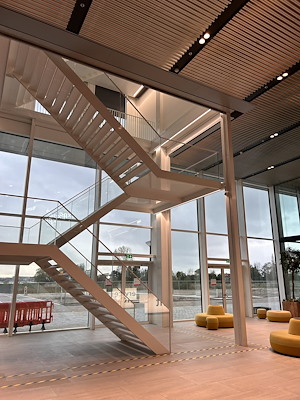 Om de ruimtelijkheid en de zichtlijnen in het atrium te versterken, is het liniLED® systeem naadloos geïntegreerd in de architectuur. De lichtlijnen volgen de contouren van de balustrades, vides en trappen. Hiermee worden de verschillende verdiepingen visueel met elkaar verbonden en ontstaat er een dynamisch lijnenspel dat de openheid van het onderwijsgebouw benadrukt.