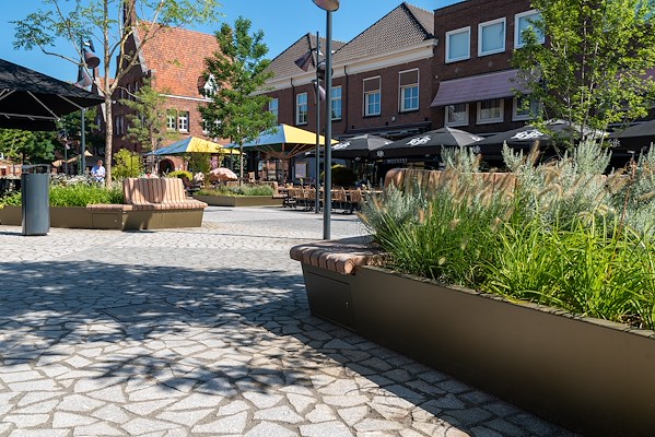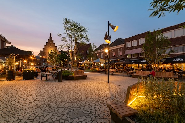 Burobol ontwierp voor Gemeente Waalwijk een levendig stadshart, waarbij het Raadhuisplein en de Markt zich weer als verschillende pleinen profileren. Het historische gebouwenensemble van architect Kropholler op het Raadhuisplein en het lommerrijke, gastvrije horeca gedeelte op de Markt. Waterberging onder de verharding en een diversiteit aan bomen. Resultaat van een topteam met gemeente en specialisten. Grijsen Park en Straatdesign verzorgde de door Burobol ontworpen boombanken en Rots Maatwerk bv de fraaie fontein bij de lantaarn. Handelsmij. Van den Elshout en de Bont B.V. heeft de unieke natuursteen verharding en gezaagde radialen naar de lantaarn vakkundig en superstrak aangelegd. Arjen van der Cruijsen maakte het lichtplan met armaturen met leerpatroon.