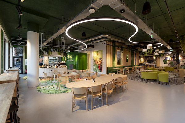 Voor de nieuwe entree en ontmoetingsplek van Heineken International BV aan de Stadhouderskade in Amsterdam hebben we unieke, op maat gemaakte lichtoplossingen gerealiseerd. Het hoogtepunt is een elegante, gebogen lichtlijn van maar liefst 85 meter, die slingerend over de gehele begane grond loopt. Deze lichtlijn biedt niet alleen functioneel licht, maar kan door de toepassing van RGBW-leds ook een sfeervolle ambiance creëren.
