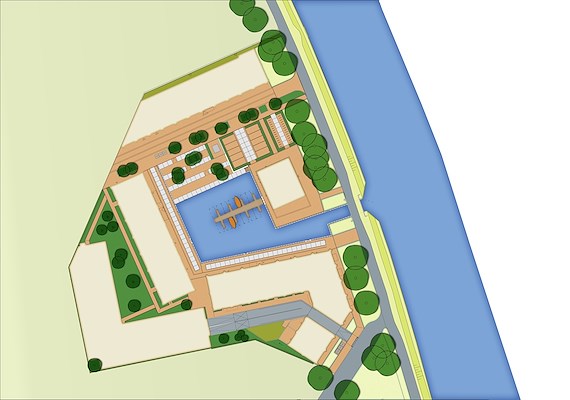 De haven heeft een recreatieve functie maar dient ook voor opvang van regenwater. Terrassen aan de haven vormen een openbare ontmoetingsplek. Rond het haventje zijn industriële stelconplaten ingezet als stedelijke tribune aan het water. Ze vormen een speels lijnenspel gecombineerd met lopers in gebakken klinkers en afgewisseld met weelderige plantvakken. De natuur breekt rijkelijk door de verharding. De gevarieerde, droogtebestendige beplanting en het samenspel van nieuwe en bestaande bomen, geven ruimte voor natuur en natuurbeleving in de stedelijke omgeving. Vollmer+partners stelde ook het bestemmingsplan voor Wilhelminawerf op.