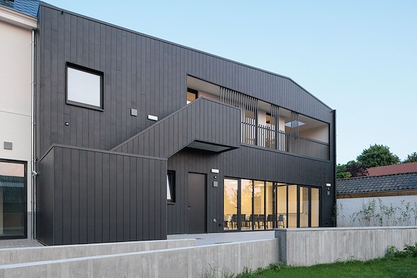 Architecturaal contrast met Cedral leien en sidings binnen historische contouren