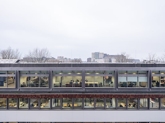 Door de bestaande constructie – de ‘botten van het gebouw’, zoals Mecanoo het noemt – grotendeels intact te laten en aan te vullen met losmaakbare, flexibele elementen, is een gebouw ontstaan dat zich kan blijven aanpassen aan veranderende behoeften. De energieprestaties zijn indrukwekkend: het energieverbruik en de CO2-uitstoot zijn 80% lager dan vóór de renovatie.