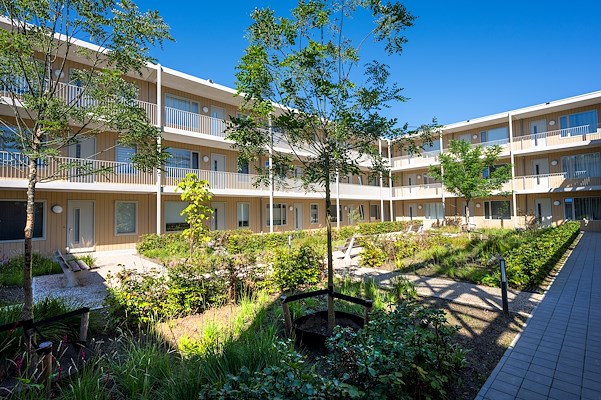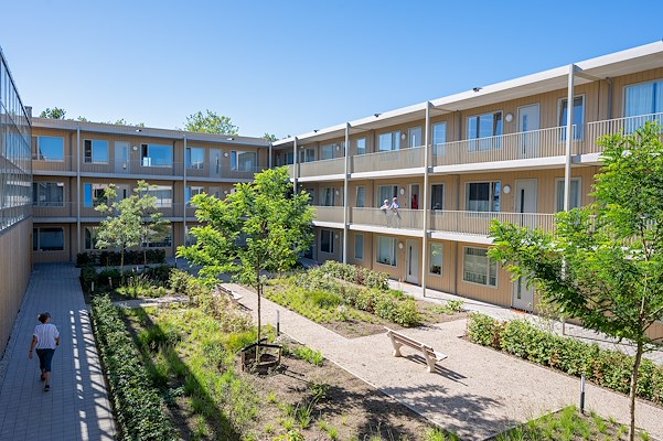 De directe ligging aan het spoor vroeg om een slimme oplossing voor geluid en buitenruimte. Door het geluidsscherm vorm te geven als een 42 meter lange kas ontstond een multifunctionele plek waar bewoners tuinieren, elkaar ontmoeten en beschut kunnen verblijven. Prefab wanden, HSB-gevels en doorgestapelde balkons maakten een snelle bouw mogelijk zonder concessies aan uitstraling. Het project is all-electric, voorzien van warmtepompen, gebalanceerde ventilatie en 336 zonnepanelen. Natuurinclusieve maatregelen, zoals geïntegreerde plantenbakken en vleermuiskasten, versterken de groene ambitie.