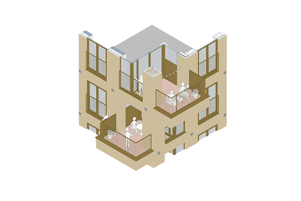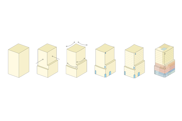 is in verschillende workshops vertaald naar een karakteristiek woonblok met koop-, huur- en sociale woningen met in de plint commercieel programma en een groene openbare binnentuin. Door de samenwerking tussen de architecten van