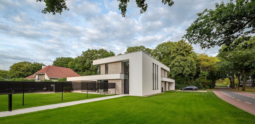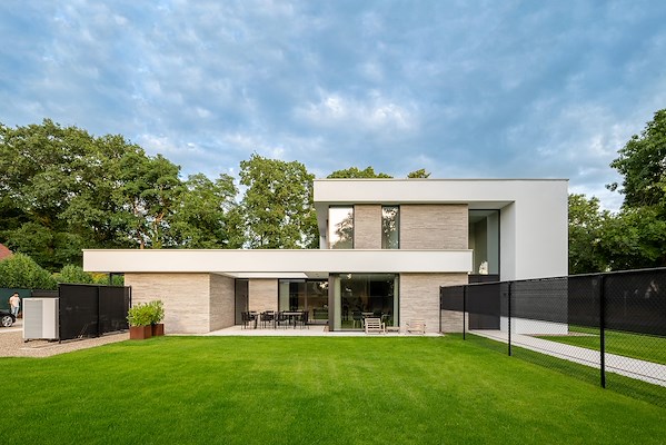 In de prachtige, bosrijke omgeving van Venray, staat een bijzonder dubbel woonhuis dat de indruk wekt van één riante villa. Het strakke ontwerp met plat dak en witte stucgevels, gecombineerd met subtiele accenten in GeoStylistix Unique Beige, creëert een gevoel van luxe en eenheid. Dit unieke ontwerp biedt het beste van twee werelden: de privacy van een dubbele woning, maar met de uitstraling en ruimte van een villa.