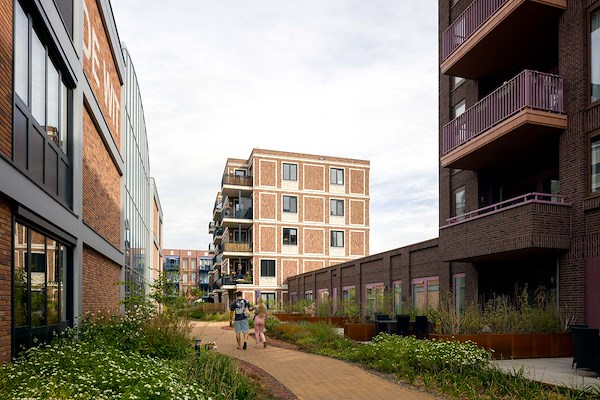 Ook aan de gevelverbanden is veel werk besteed. Inspiratie werd geput uit oude baksteenverbanden. Daarbij namen de architecten echter de vrijheid om deze te vertalen naar een eigentijdse vormgeving. Het maakt dat de nieuwe wijk modern en vertrouwd, maar vooral ook coherent, ruimtelijk en een tikje ‘gezellig Brabants’. Want ook die sociale aspecten komen terug aan de Oranjekade. Zoals in de gemeenschappelijke tuinen die tegemoetkomen aan de menselijke maat. En in het paviljoen, waarvoor de monumentale spanten van het EDAH-gebouw zijn gebruikt.