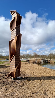 De basis van de toren is van verduurzaamd, gebrand Douglashout van Staatsbosbeheer. In de loop van tijd zal er natuurlijke vergrijzing plaatsvinden van dit hout. Verder is er voor de frames die als een (ring)slang rondom de toren omhoog kruipen gebruik gemaakt van geplatoniseerd vurenhout. Hierdoor is het zeer vormvast en heeft het een levensduur van wel 50 jaar!