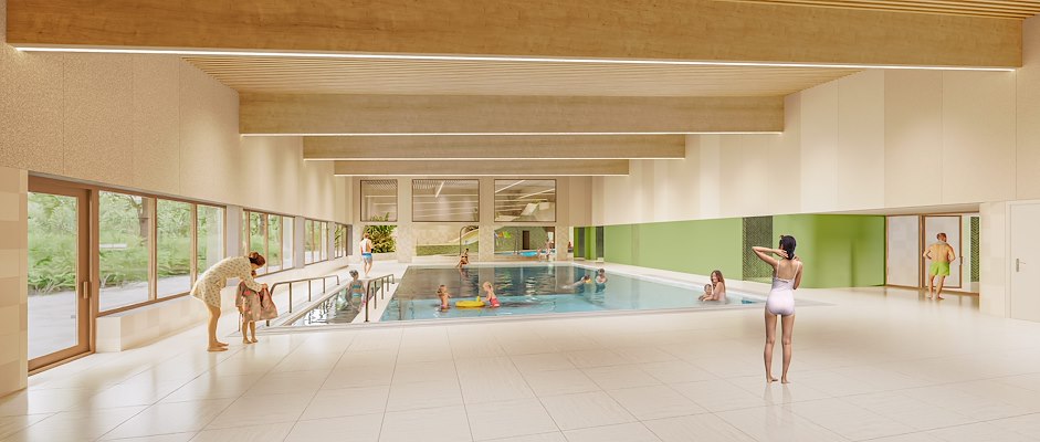 Het zwembad is toegankelijk voor iedereen, met speciale voorzieningen voor mensen met een beperking, zoals een geleidelijn voor slechtzienden (geïnspireerd door wereldkampioen Liesette Bruinsma), een kennel voor blindengeleidehonden, rolstoeltoegankelijke kleedkamers en tillift-systemen. De routing is intuïtief en veilig, met heldere zichtlijnen en een centrale hal als ontmoetingsplek.