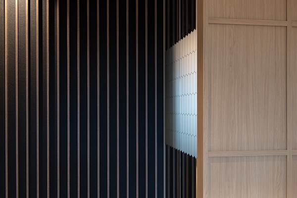 Die beweging zie je terug in de materialisatie. Vooral de gesloten houten wanden spelen hierin een hoofdrol. Ze vormen een maatwerk basiswandsysteem, voorzien van houten lijstwerk dat naadloos aansluit op het interieurconcept. De houtkleur past bij de duurzame identiteit van ASN Bank. Francis: “De patronen in het hout geven rust én herkenbaarheid. Het verbindt de ruimtes.”