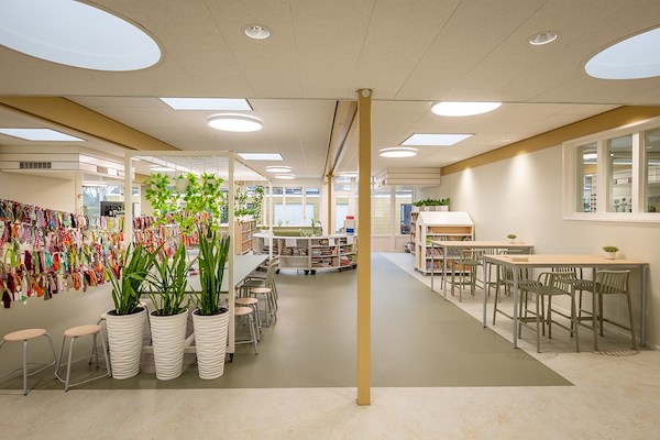 Architecten_Lab heeft het ontwerp gemaakt voor de verbouwing en het interieur voor een gezond en modern schoolgebouw. Het gebouw biedt na de renovatie aangename leerpleinen, ruimtes voor zelfstandig werken, nieuw meubilair en ruimtes voor individuele begeleiding van leerlingen. De verbouwing is in december 2025 opgeleverd en is op 14 januari 2026 feestelijk geopend door en voor de kinderen.
