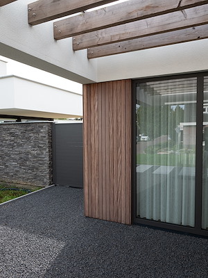 Afrormosia gevelbekleding Villa Puth