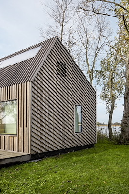 In Noord-Holland staat dit bijzondere project waarbij Fraké Noir® gevelbekleding is toegepast. Deze unieke recreatiewoning, gelegen op een privé eiland, vormt een prachtig middelpunt in het natuurlijke landschap van Noord-Holland. De gevel is opgebouwd uit verschillende maten Fraké Noir en zal geleidelijk aan een fraaie, natuurlijke vergrijzing ondergaan door de invloeden van het weer. Op deze manier smelt de woning harmonieus samen met de omgeving, waardoor de bewoners ten volle kunnen genieten van de rust en de natuurlijke schoonheid, zelfs in dit bruisende deel van Nederland.