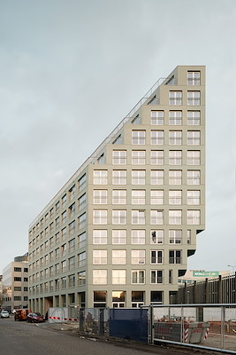 We hebben de stedenbouw en de unieke vorm en schaal van de kavel van twee randvoorwaarden omgezet in de kans om Octavia Hill te ontwerpen als één nieuw sculpturaal object, dat tegelijk abstract en onderscheidend is. Vanuit elke hoek ziet het gebouw er telkens anders uit — van een puur, orthogonaal blok tot een rotsachtig volume dat je nieuwsgierigheid prikkelt.