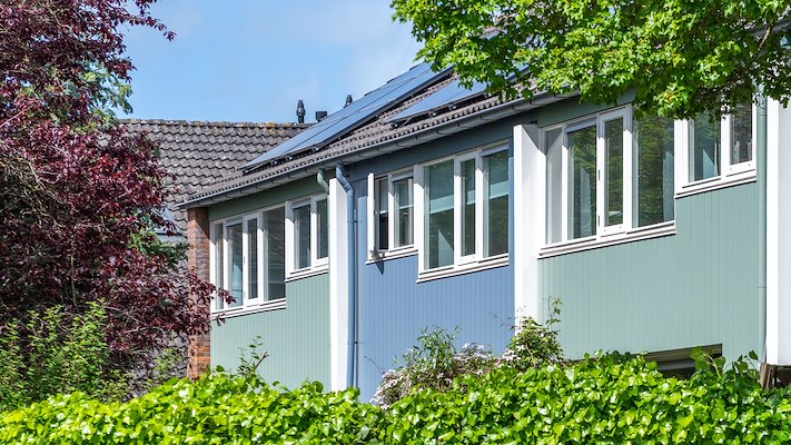 Wie niet beter weet, waant zich even in Zweden of Denemarken. In de Groningse wijk Oosterhoogebrug staan sinds kort ruim 200 woningen met fonkelnieuwe gevels in frisgroene en lichtblauwe Scandinavische tinten. Met de gekozen Rockpanel Lines hebben deze corporatiewoningen bovendien een duurzame, onderhoudsvrije gevel gekregen.