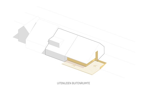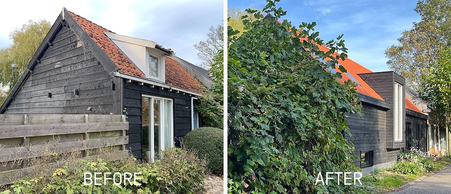 verbindt het oude en het nieuwe deel op natuurlijke wijze en is vanaf de straatzijde zichtbaar via een dubbelhoge dakkapel die door de gootlijn heen zakt — een subtiel, maar karakteristiek accent. De rest van de straatgevel blijft ingetogen: de nieuwe houten gevelbekleding en kozijnen in dezelfde kleur versterken de eenheid. Met oog voor detail is het Zweeds rabat op een strakke manier toegepast; met respect voor de historische uitstraling, maar met een moderne twist.