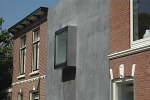 Een kleine opslagruimte in een 19e eeuwse stadswijk van Utrecht is herbestemd tot compacte woning. De twee bestaande gevelopeningen zijn hergebruikt ten behoeve van een glaspui met voordeur op de begane grond en een RVS erker op de eerste verdieping. Daarnaast is de gevel een meter verhoogd ten behoeve van een borstwering van het dakterras. De bestaande, enigszins anonieme, gevel is hierdoor getransformeerd in een robuuste, karakteristieke gevel. De nieuwe gevel past qua maat en schaal bij de belendingen, maar heeft wel een eigen, hedendaagse uitstraling temidden van de woningen uit het begin van de vorige eeuw.