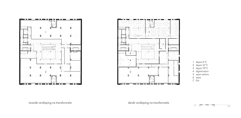 De begane grond is veranderd in een vrij toegankelijke stedelijke ruimte met café, museumwinkel, bibliotheek en een ‘huiskamer voor de fotografie’ voor tentoonstellingsopeningen, debatten en manifestaties. Toegankelijk via zowel de zuid- en noordzijde. In het souterrain zijn garderobe, sanitair, educatieve ruimtes en een donkere kamer ondergebracht. De bestaande verdiepingen huisvesten depots en tentoonstellingen. Twee nieuwe verdiepingen zijn toegevoegd in een nieuw dakvolume dat als een kroon boven het gebouw zweeft. Op de zesde verdieping zijn kantoren en museumrestaurant gesitueerd; de zevende verdieping bevat zestien short-stay appartementen.