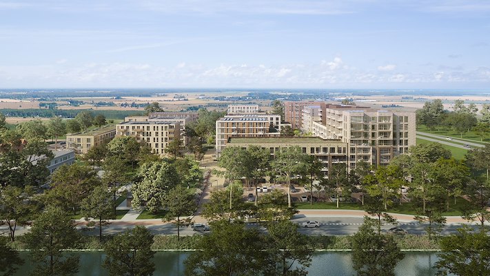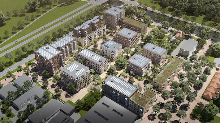 In Hoofddorp, op de plek waar de N201 en de Hoofdvaart samenkomen, transformeert een voormalig bedrijventerrein tot een nieuwe woonwijk. Opdrachtgever Evast realiseert hier meer dan 600 woningen, verdeeld over twaalf gebouwen. ENZO tekent voor drie gebouwen met samen 219 appartementen. Het ontwerp legt de nadruk op een harmonieuze mix van wonen, groen en bedrijvigheid. Centraal staat het creëren van een kwalitatieve leefomgeving die de transformatie van het gebied versterkt.